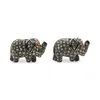 A pair of diamond and ruby set elephant cufflinks. Set with an estimated total of 0.70 carats of rose cut diamonds, each with a ruby eye, into gilt silver. Gross weight approximately 8.44 grams.