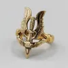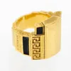 Versace- a brass and black inlaid dress ring, Greek key design, with approx 20mm, signed Versace, made in Italy 17, size Q, in a Versace box and outer case Further details: some marks and scratches