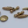 A pair of yellow metal cufflinks, each with khanjar (one lacking removable dagger hence as found), chain fitting (yellow metal assessed as 18ct. gold). (6.8g)