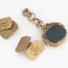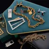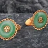 pair of oval chain link malachite set cufflinks