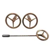 A pair of metal Brutalist swivel cufflinks, together with a jade type pin with continental marks 14ct, total gross weight approx 1.6gms (pin bent) along with a jade set gold chain, possibly 14ct gold …