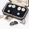 A cased set of diamond and mother-of-pearl cufflinks and buttons