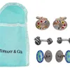 Tiffany & Co- a cased vintage Tiffany & Co Tuxedo set comprising cufflink and studs, with circular form with beaded rim, assessed as 14ct gold, weight approx 19.3gms Further details: minor scratches m…