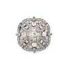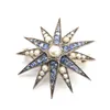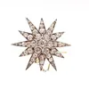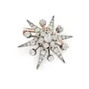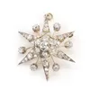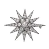 A white metal diamond stylised star form brooch, set round brilliant cut diamond to centre with an estimated weight of 0.93cts assessed colour J, assessed clarity VS with three surrounding round brill…