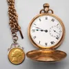 base metal full hunter pocket watch with the section of a 9ct gold Albert chain