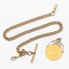 9ct gold curb linked watch chain with a Victorian half sovereign