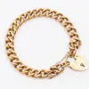 A 9ct rose gold Albert link chain bracelet, width approx 8mm, padlock clasp and safety chain, length approx 18.5cm, weight approx 17.8gms Further details: clasp good, end loop join opened, some denti