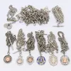 A collection of silver fob watch chains, to include Albert, fetter and oval links, various length and widths the widest approx 8mm, some suspending various silver medallions including an enamel medall…