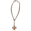 A 9ct rose gold graduating curb link Albert chain with a Maltese cross locket, chain length 42cm