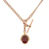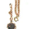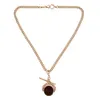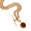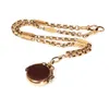 A 9 CARAT GOLD ALBERT CHAIN NECKLACE WITH 9 CARAT GOLD HARDSTONE SWIVEL FOB fancy link design necklace, with 9ct T-Bar, 22cm long and weight 19.1g. Condition: Good, some small scratches to hardstone.
