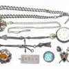 gold Albert chain and a silver key wind open faced pocket watch