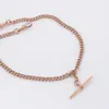 A 9ct rose gold loose curb link Albert chain with T bar, chain length 40cm weight 17.1g.