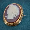 large gold carved shell cameo brooch