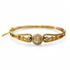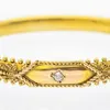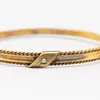 An early 20th century diamond set 15ct gold bangle, comprising a small old cut diamond set to the centre, within a rope twist border, width approx 7mm, internal diameter approx 57mm, hinged with box