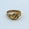 AN 18CT GOLD SNAKE RING — With old cut diamonds set to the heads, stamped 18C, size N½, gross weight 6.7 grams