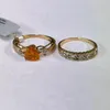 A 9ct yellow gold diamond set half hoop ring. Size S. Along with a fire opal and diamond ring - please note the fire opal is crazed and likely to break. Size S 1/2. Gross weight 6 grams approximately.…