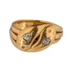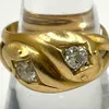 A Victorian double serpent head 18ct gold and diamond ring. Set with two old mine cut diamonds with diameters of approximately 3.5mm and 4.0mm each. Size P. Approximate weight 9.8 grams.