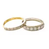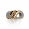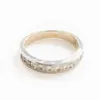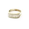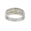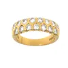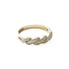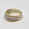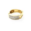 An 18ct bi-colour gold and diamond half-hoop style ring, formed from two yellow and one white gold band, each band pave set numerous round brilliant cut diamonds to front, shank stamped "750", serial …