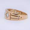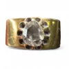 A pear shaped rose cut diamond set dress ring. Featuring a rose-yellow precious metal band, approximately 8mm wide, set with a closed back claw set rose cut diamond, measuring approximately: 6.1mm x 5…