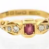 An Edwardian 18ct gold ruby and diamond ring, width approx 6mm, size N, hallmarked Birmingham 1808, total gross weight approx 2.8gms (some denting and wear to shank) in a retailers case N.B Hansen Exm…