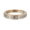A GOLD AND BAGUETTE DIAMOND HALF HOOP RING — Mounted with baguette cut diamonds in channel settings, in 18ct gold with rubbed '750' mark, size K, gross weight 3.6 grams