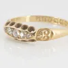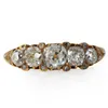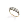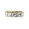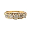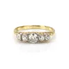 An early 20th century five stone diamond half hoop ring. Stamped "18ct" to the shank and testing as 18k gold. Set with five graduated old mine cut diamonds. bezel set into white metal, testing as plat…