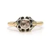 A ROSE CUT DIAMOND RING — With an oval rose cut diamond in a closed back silver and gold setting, on an unmarked gold band, possibly 18th century, size N½, gross weight 1 gram, with a box