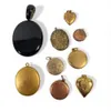 A Collection of Seven Gilt Metal Lockets, a Gilt Metal hollow Heart Metal Pendant and a jet type Locket (9). Gilt metal items weight: 74.8g Jet type locket 43mm by 73mm by 11mm.