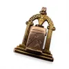 A 9ct gold Masonic unfolding locket charm. In the form of a door beneath an archway, a compass and square to the front, which unfolds to reveal a five panel concertina, embellished with pictograms. Ha…