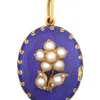 Victorian gold split pearl and champlevé enamel oval locket
