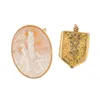 A GOLD LOCKET AND A CAMEO (2) — The locket with floral and foliate motifs, in unmarked gold, weight 5.8 grams, the cameo depicting a scene of a woman training a dog, in a 9ct gold frame, with a safety…