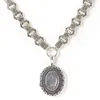 Victorian silver oval locket and circular linked chain
