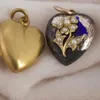 An antique heart shaped "Front and back 9ct" locket, set with a gypsy set old mine cut diamond (approximate diameter 2.1mm). Front and back lockets are traditionally a base metal frame work with a 9ct…