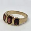 9ct gold garnet ring trilogy ring. Approx 4.6g. Nice condition.