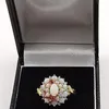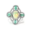 opal, emerald, and diamond quatrefoil form ring