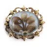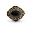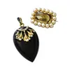 A VICTORIAN ONYX, HALF PEARL AND BLACK ENAMEL BROOCH, CIRCA 1870