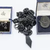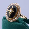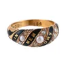 A Victorian 9ct gold mourning ring, together with an earlier 19th century scrollwork and black enamel mourning brooch. The ring, featuring split pearls picked out in a flower form on a ground of black…