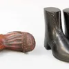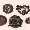 A GROUP OF JET AND IRISH BOG OAK BROOCHES three Irish bog oak brooches, one possibly depicting Blarney castle, two Jet brooches, one depicting hawthorn leaves, largest 6cm wide (5) Condition report: G…