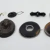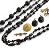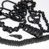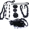 JA collection of loose jet and vulcanite beads, chains and carved pieces, along with a brooch and cross etc, (1 bag). further details: wear commensurate with age