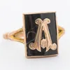 A Victorian 9ct rose gold and onyx mourning/initial ring, rectangular form overlaid with a rose gold initial A, width approx 12mm, split shoulders, size K1/2, total gross weight approx 2.4gms Fuert