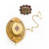 A circa 1860s Victorian garnet and seed pearl mourning brooch. Featuring vine leaves, symbolising Christ, and beaded decoration, with a glazed plaited hair panel to the verso. Fitted with a security c…