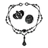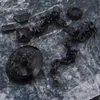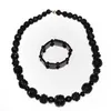 A collection of 19th century jet type jewellery to include a pair of drop earrings modeled as acorns, hook fittings, length approx 40mm, along with a necklace comprising flat chain like discs joined b…