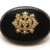 19th Century plaited hair black enamel and gilt metal mourning brooch
