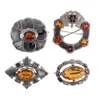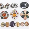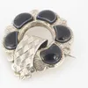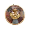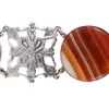 A Scottish hardstone and agate inlaid white metal brooch. Featuring specimens of agates to include bumblebee jasper, bloodstone, serpentine, jasper, blue lace and banded agate. Approximate diameter 5.…