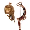 VICTORIAN SCOTTISH GOLD AND HARDSTONE SCYTHE BROOCH & GILT ELEPHANT PROPELLING PENCIL
