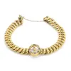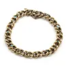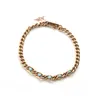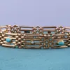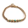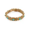 A TURQUOISE AND SEED PEARL SET CURB LINK BRACELET — With round cut turquoise stones in the centre of each link and seed pearl accents, with a box clasp and safety chain, measuring 19cm in length, in 9…