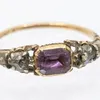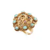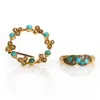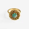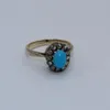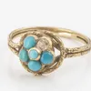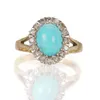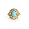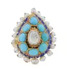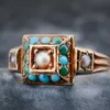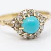 Yellow metal (tests as 15ct gold) Turquoise and rose cut diamond chip ring. Total gross weight is approximately 2.8g. Size J/K Condition report. Missing one small diamond.