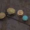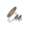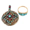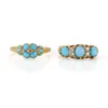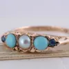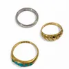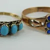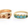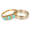 Victorian 18ct Yellow Gold Five Stone Turquoise Ring Along With A 750 Marked White Gold Wedding Band And An Unmarked Yellow Metal Ring 18ct Weight: 3.9g 750 marked weight: 3.6g Unmarked weight: 4g
