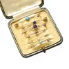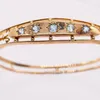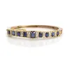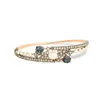 A 19th century yellow metal bangle set with a diamond, sapphires and seed pearls, 15.9g approximate weight