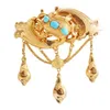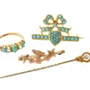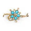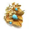 early Victorian two colour gold turquoise set leaf brooch, c.1840